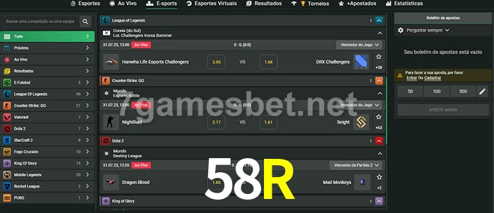 A aposta 58R oferece aos jogadores a experiência mais conveniente de apostas em eSports!